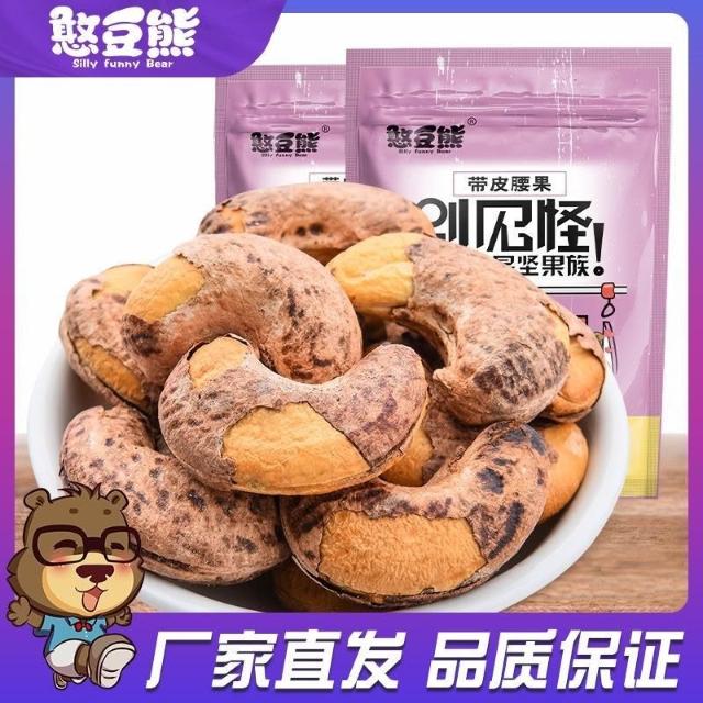檢檢優選 憨豆熊 帶皮腰果大顆粒500g凈重袋裝紫衣腰果仁堅果休閒零食100g