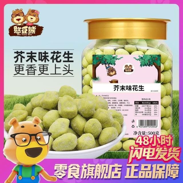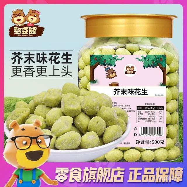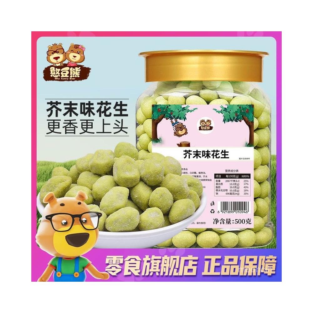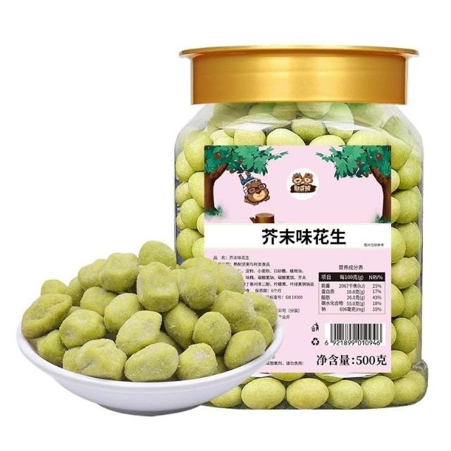檢檢優選 憨豆熊芥末味花生仁500g大罐裝魚皮花生豆果花生米下酒菜休閒零食
