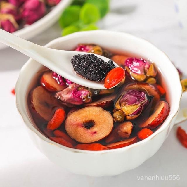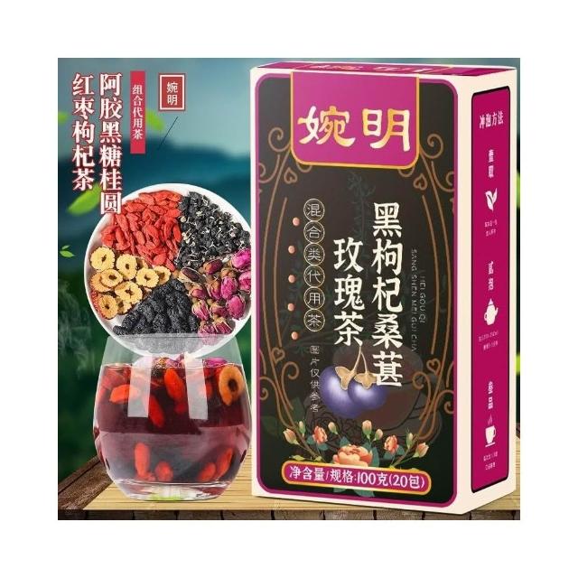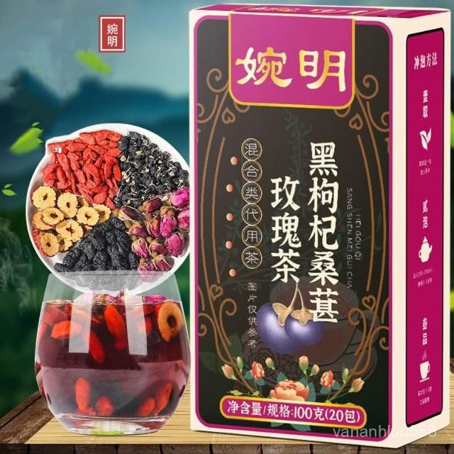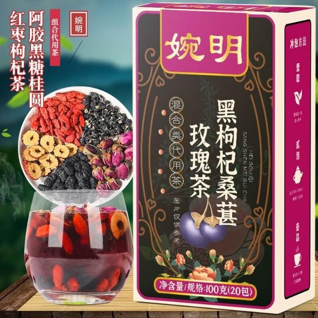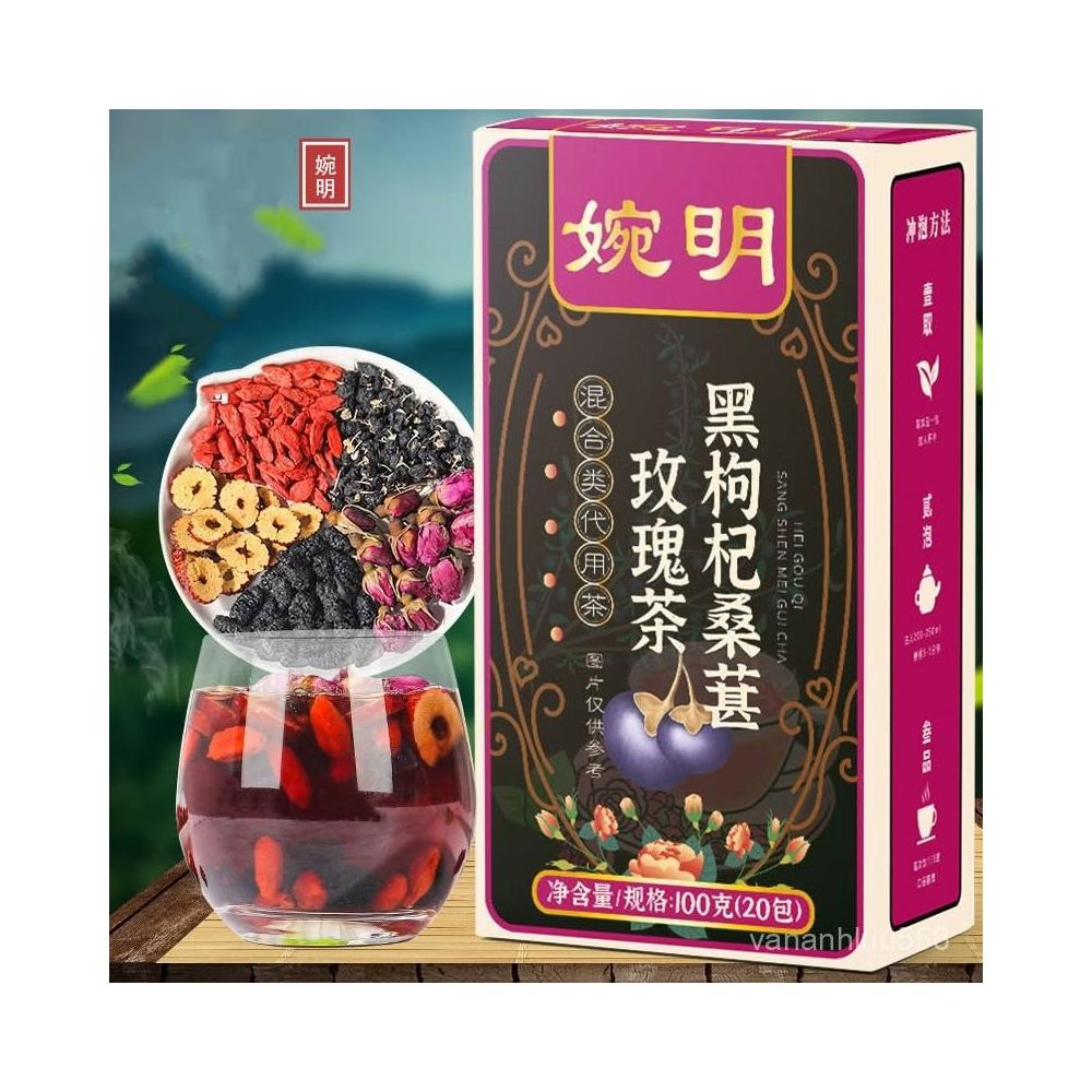 桑葚黑枸杞玫瑰花組閤紅棗幹熬夜茶包女生泡水喝的氣血內調養生茶