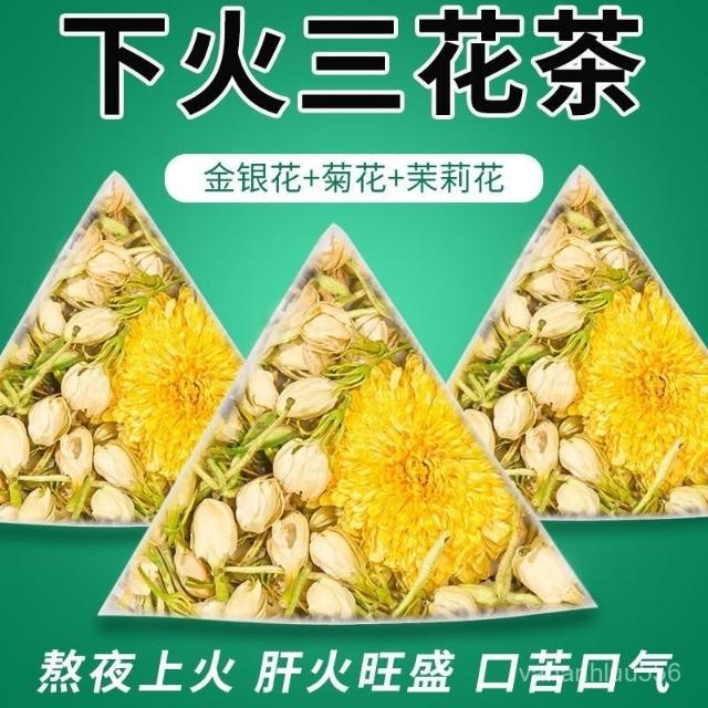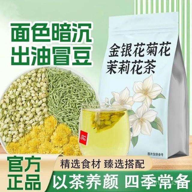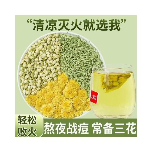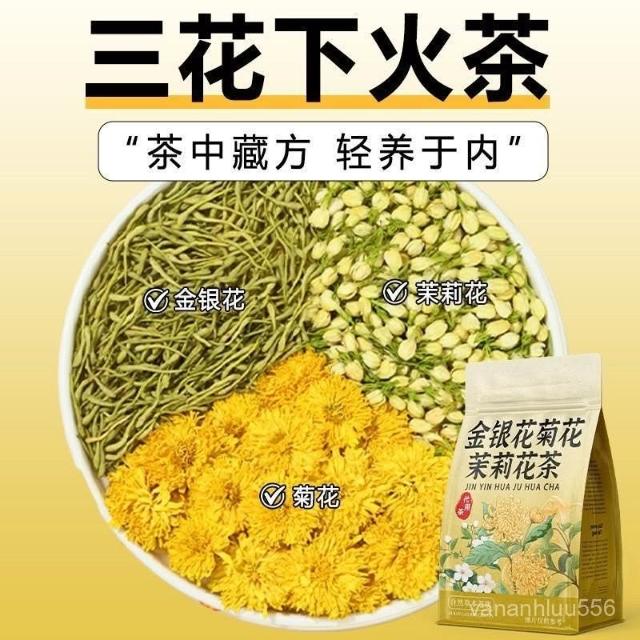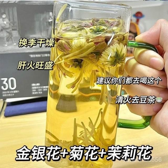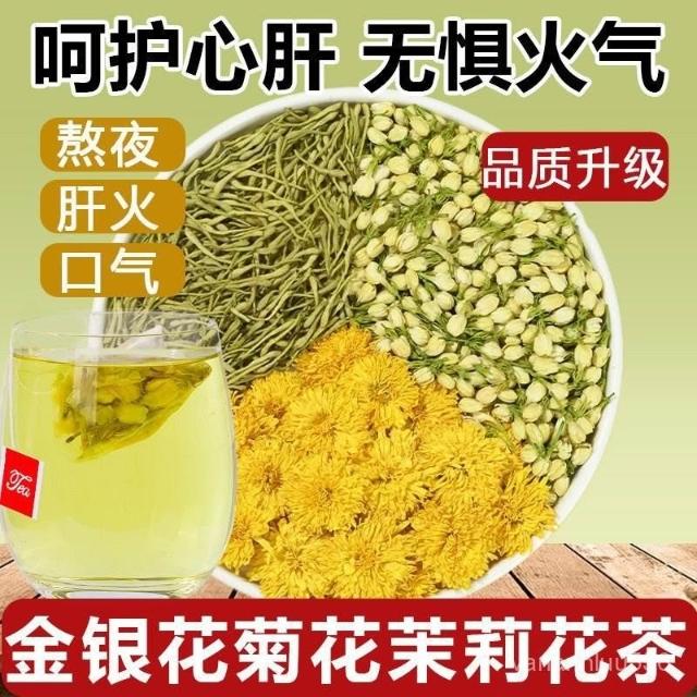 菊花茉莉花金銀花茶祛痘茶熬夜三花茶幹花去火茶清熱養生組閤花茶