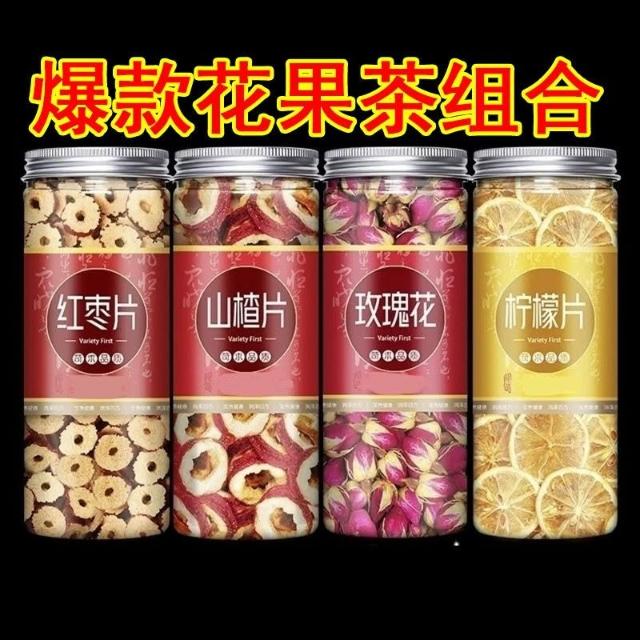 檸檬山楂玫瑰花茶幹山楂片檸檬片組閤花茶罐裝泡茶泡水喝的茶葉女