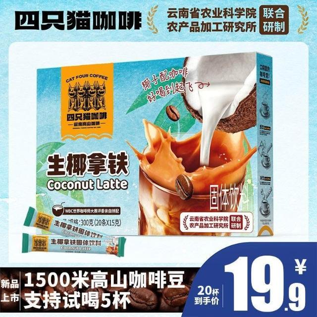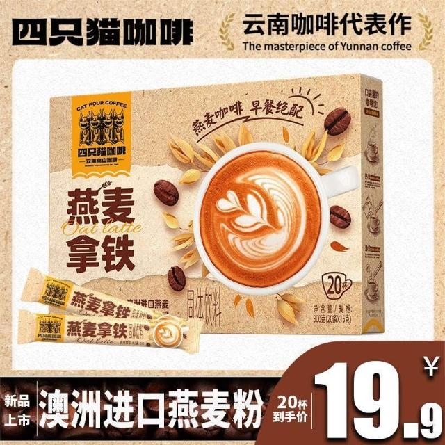 漂漂優選首單直降】燕麥/生椰拿鐵咖啡 四隻貓咖啡 三合一 速溶咖啡 早餐