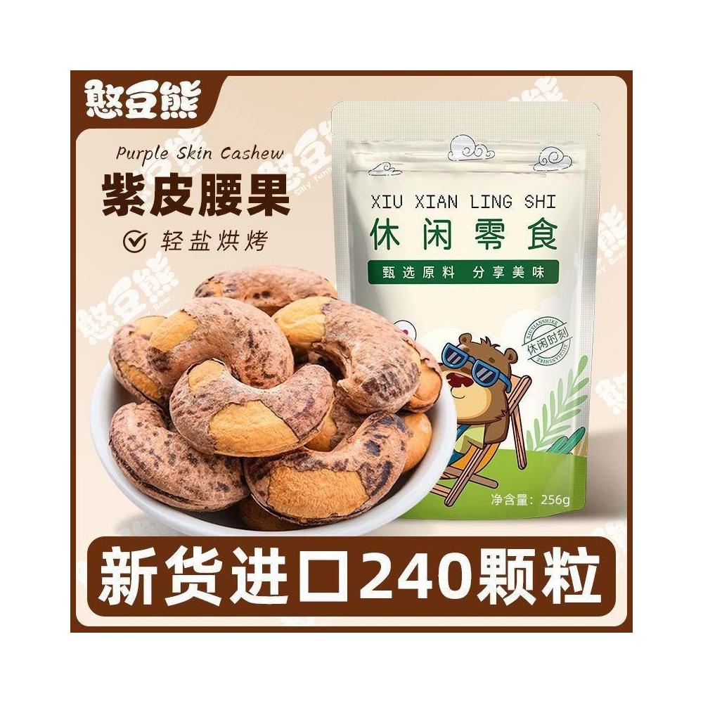 漂漂優選憨豆熊帶皮腰果仁256g罐裝越南紫皮進口新貨休閒即食乾果零食小吃