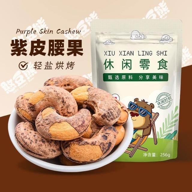 漂漂優選憨豆熊帶皮腰果仁256g罐裝越南紫皮進口新貨休閒即食乾果零食小吃