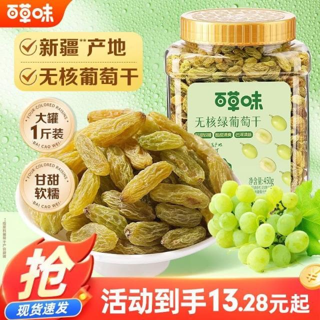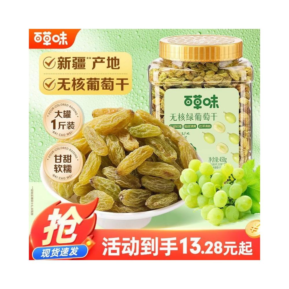 文文優選百草味無核綠葡萄乾450g罐裝新疆特產免洗一級大果乾蜜餞休閒零食