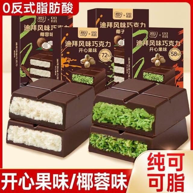 文文優選純可可脂迪拜風味夾心巧克力開心果醬味黑巧克力板磚休閒網紅零食