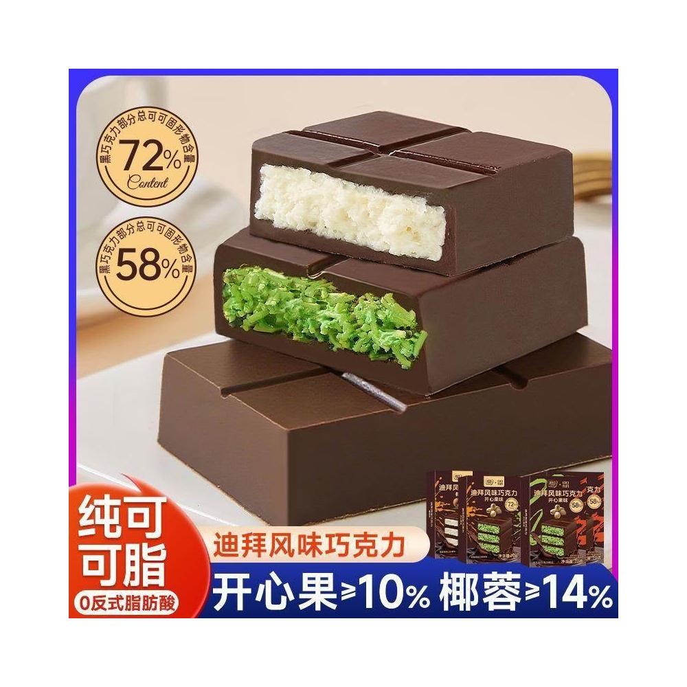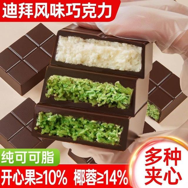 文文優選純可可脂迪拜風味夾心巧克力開心果醬味黑巧克力板磚休閒網紅零食