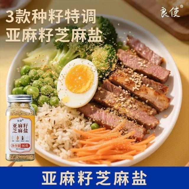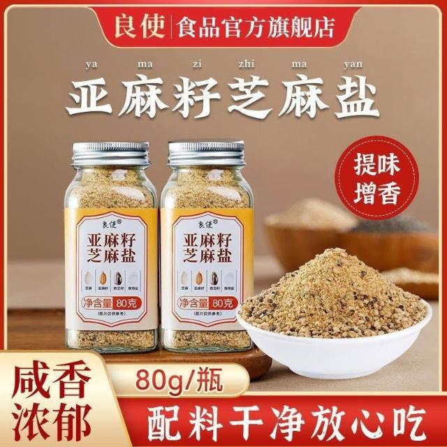 漂漂優選良使亞麻籽芝麻鹽80g正宗山東蘸料水煮菜奇亞籽調味料拌麪夾饅頭