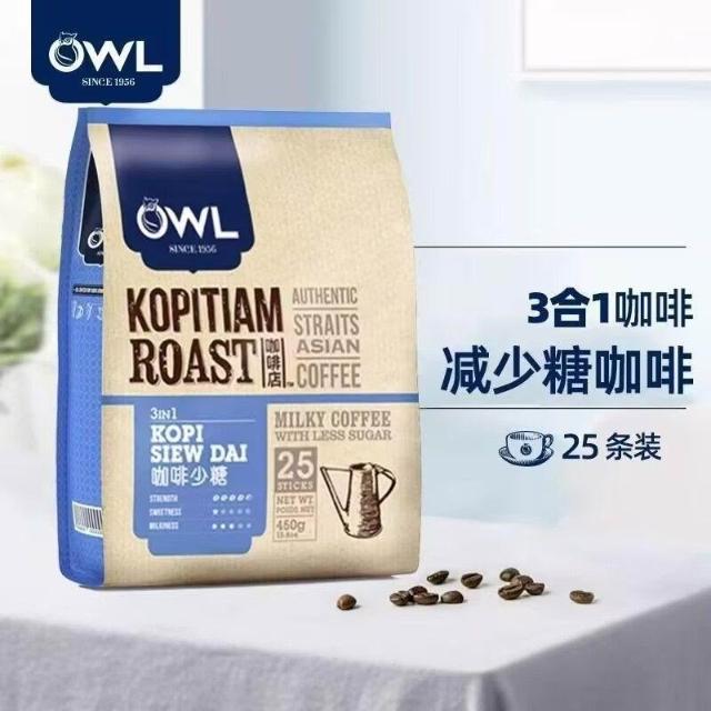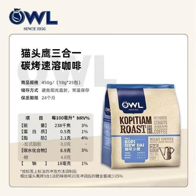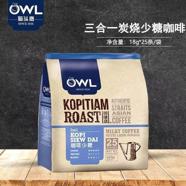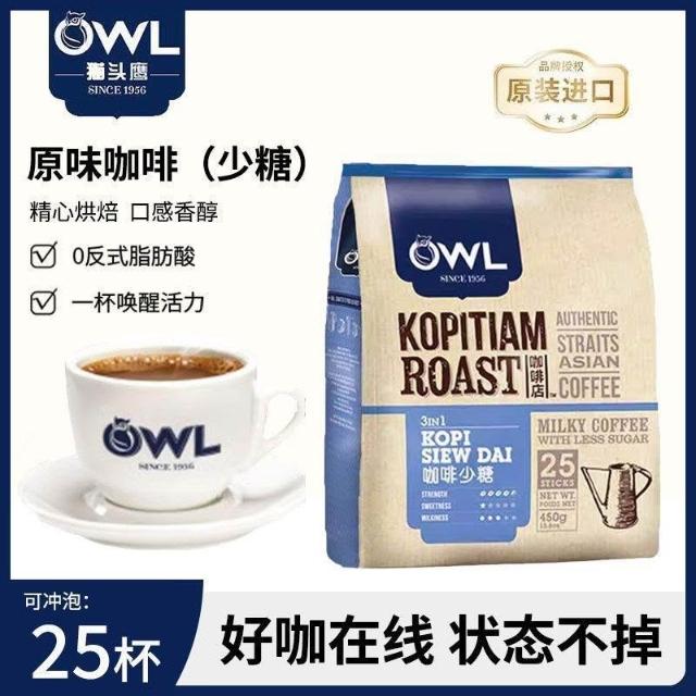 漂漂優選馬來西亞進口OWL貓頭鷹咖啡原味少糖25條*1袋三合一速溶咖啡提神