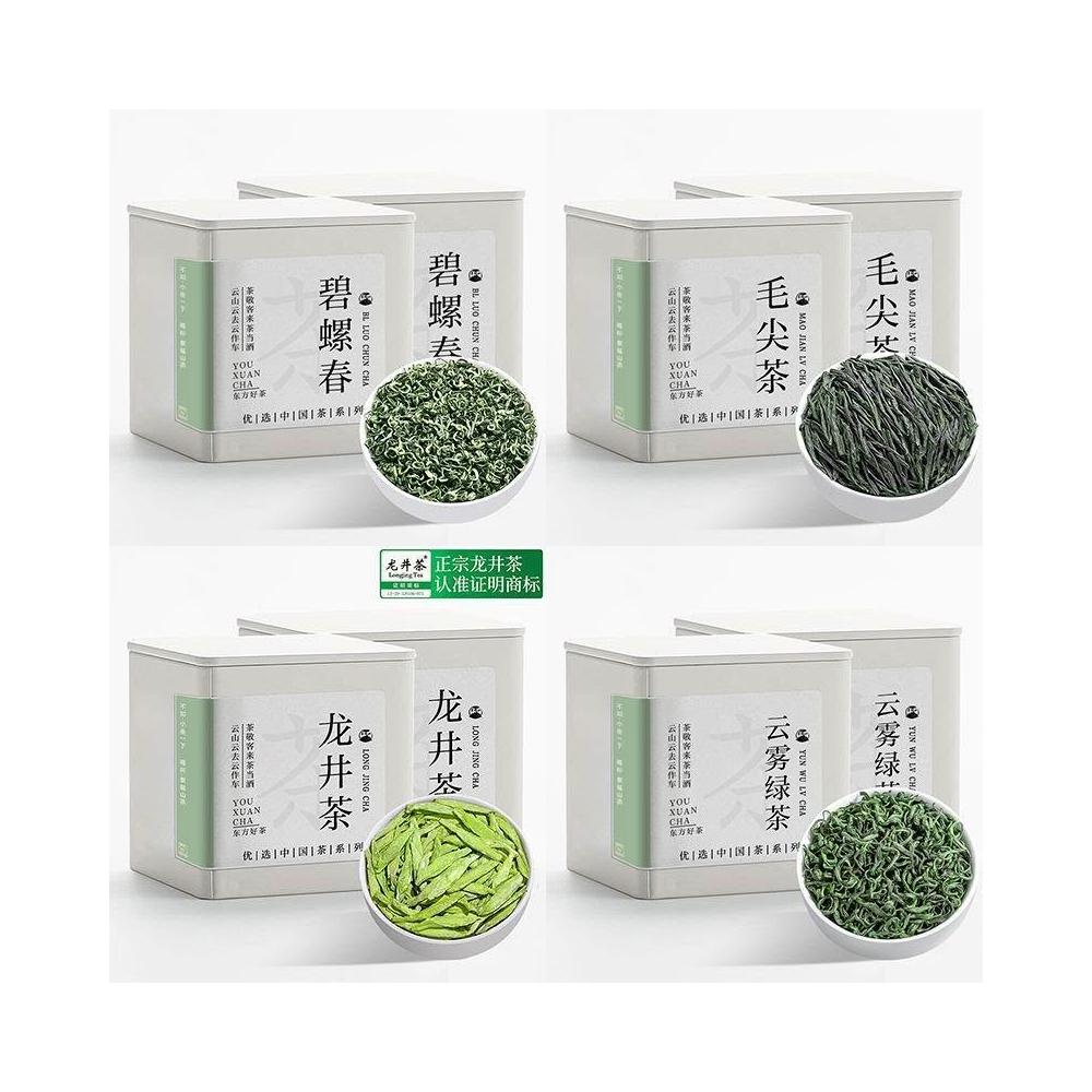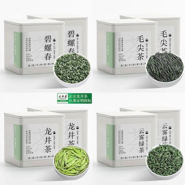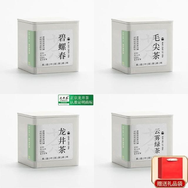 漂漂優選景福山 四大綠茶禮盒裝 明前碧螺春浙江龍井茶毛尖茶雲霧...