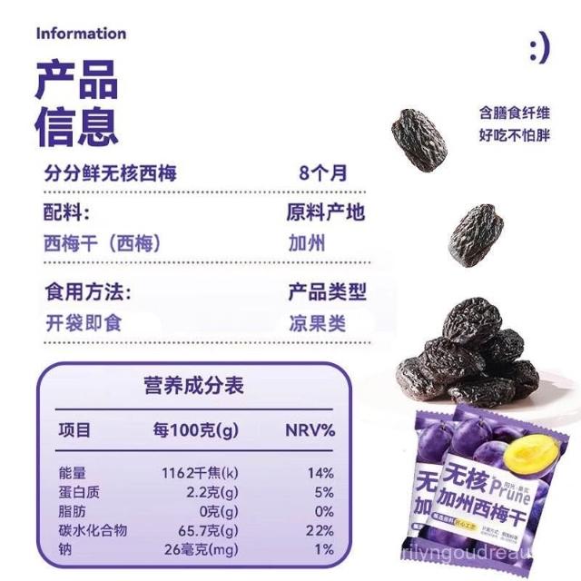 文文甄選 0脂肪無核加州西梅純果痠甜解膩顆粒飽滿獨立包裝蜜餞零食