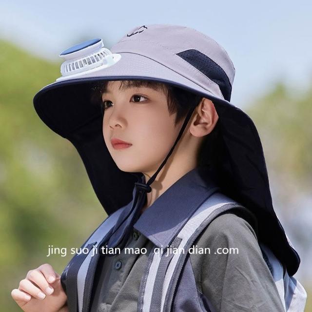 夏季兒童太陽能風扇充電帽子戶外男女童寶寶遮陽防曬披肩帽大檐帽