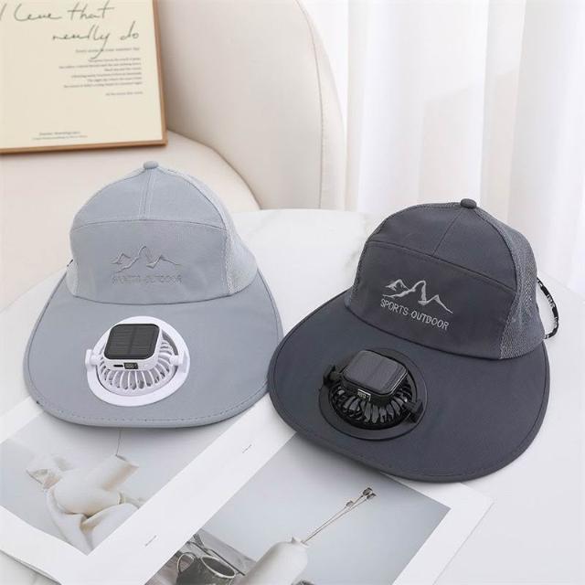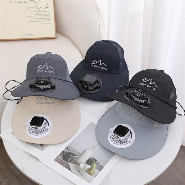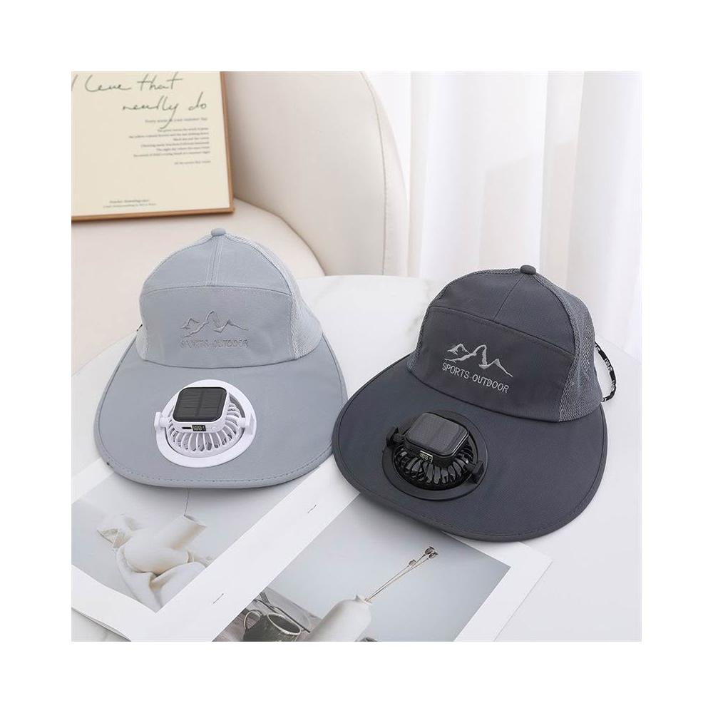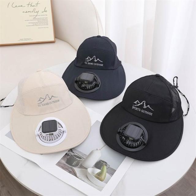 新款釣魚風扇帽子太陽能充電帶風扇的帽子夏季幹活戶外遮陽防曬帽