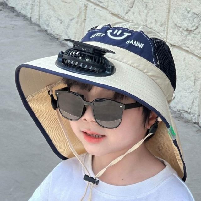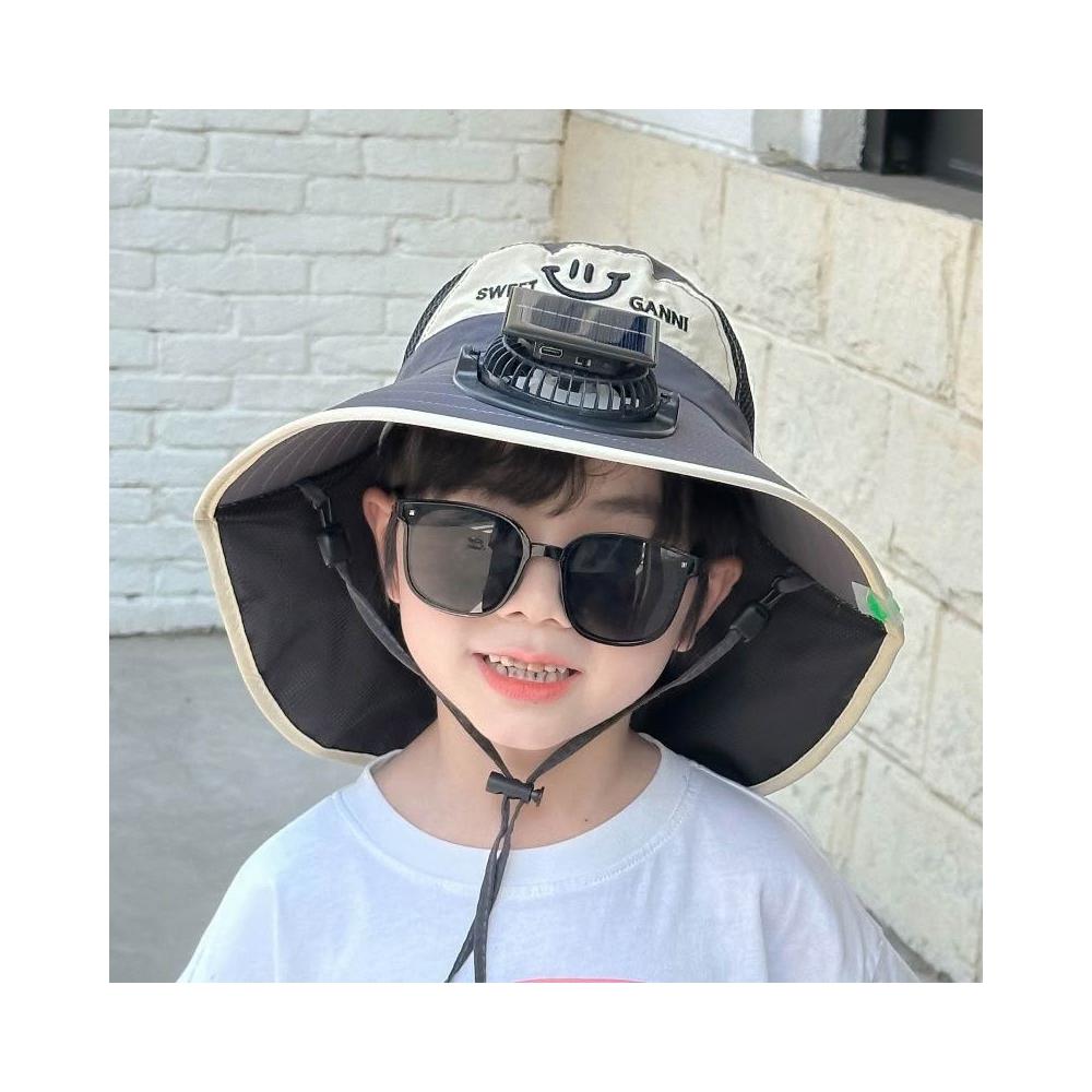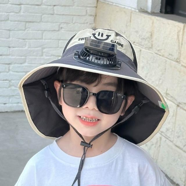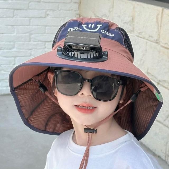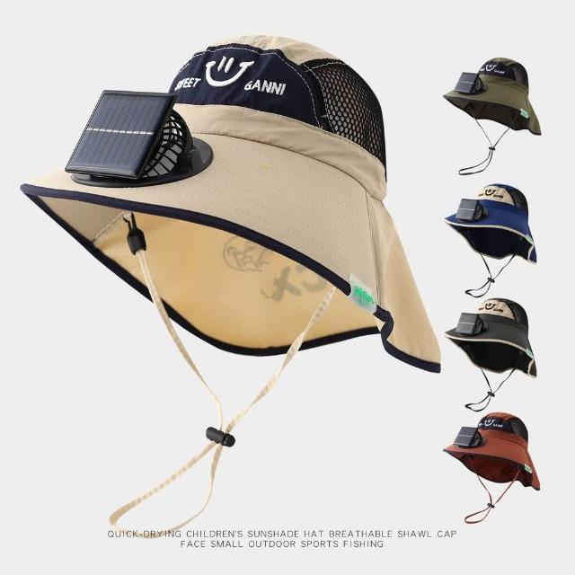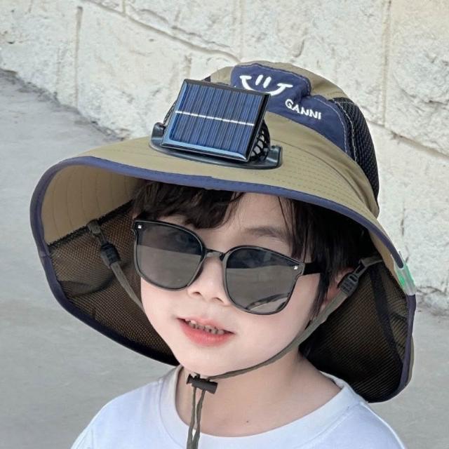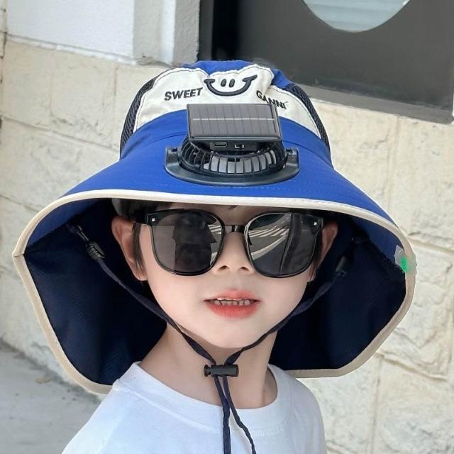 太陽能充電電風扇寶寶夏季兒童紫外線男孩大檐披肩女孩洋氣遮陽帽
