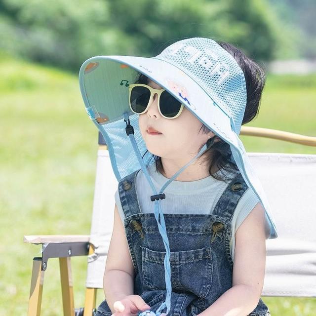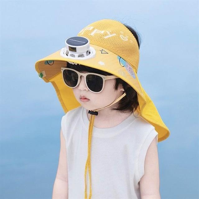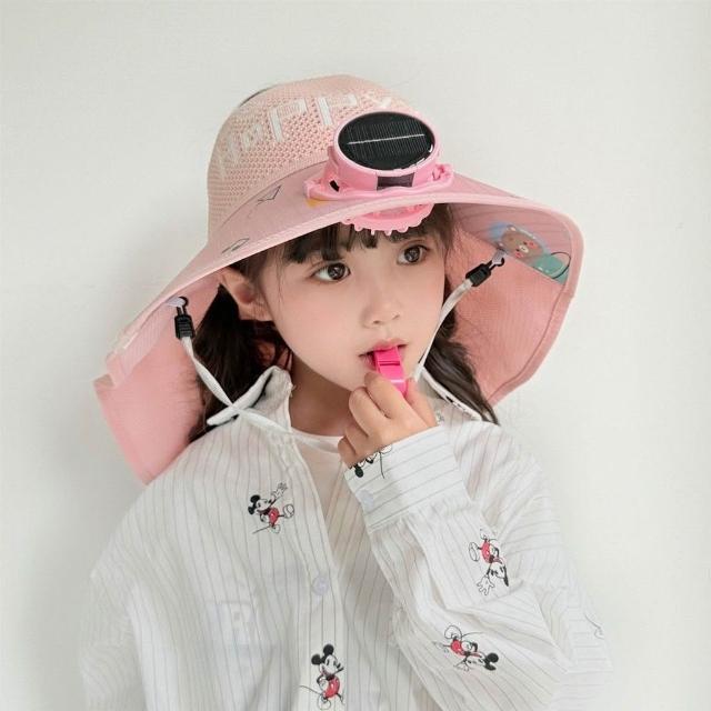 兒童防曬帽男童夏季太陽能帶風扇遮陽帽男孩帽子大檐漁夫帽太陽帽