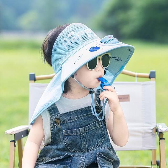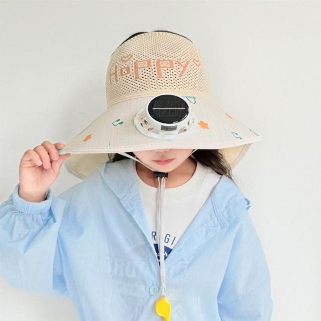 兒童防曬帽男童夏季太陽能帶風扇遮陽帽男孩帽子大檐漁夫帽太陽帽