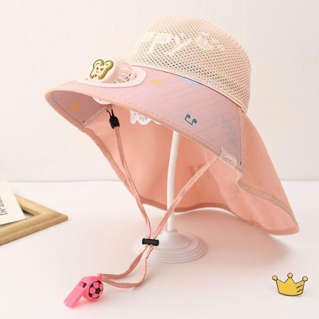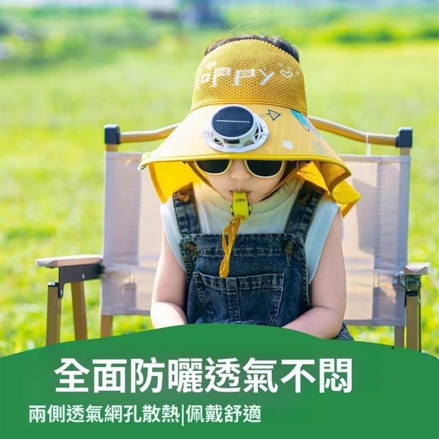 兒童防曬帽男童夏季太陽能帶風扇遮陽帽男孩帽子大檐漁夫帽太陽帽
