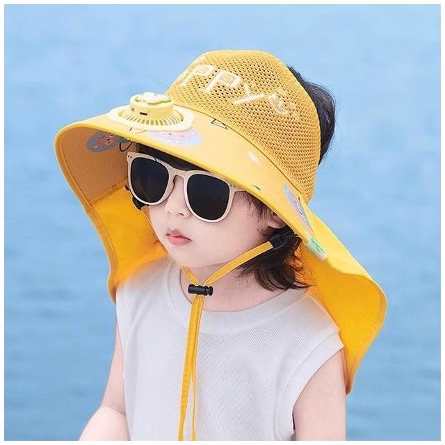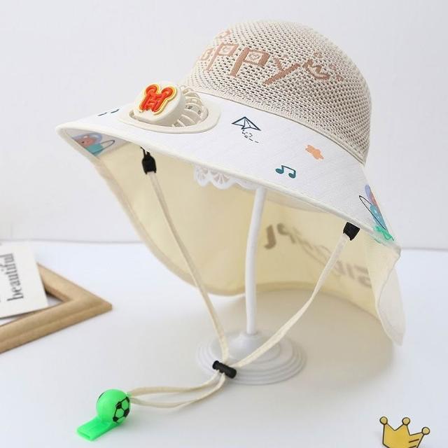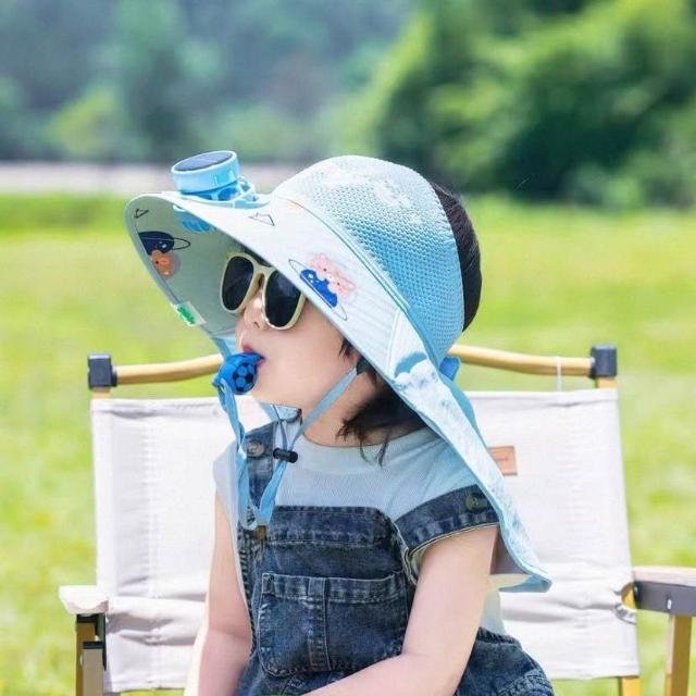 兒童防曬帽男童夏季太陽能帶風扇遮陽帽男孩帽子大檐漁夫帽太陽帽