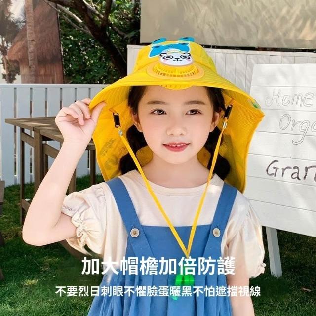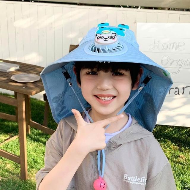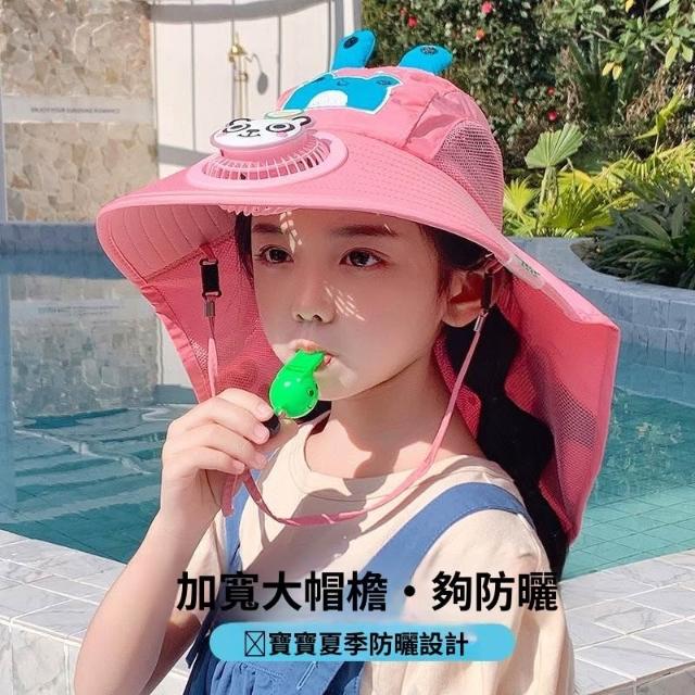 風扇帽子兒童夏天防曬帽男女童夏季遮陽披肩帽寶寶帶電風扇太陽帽
