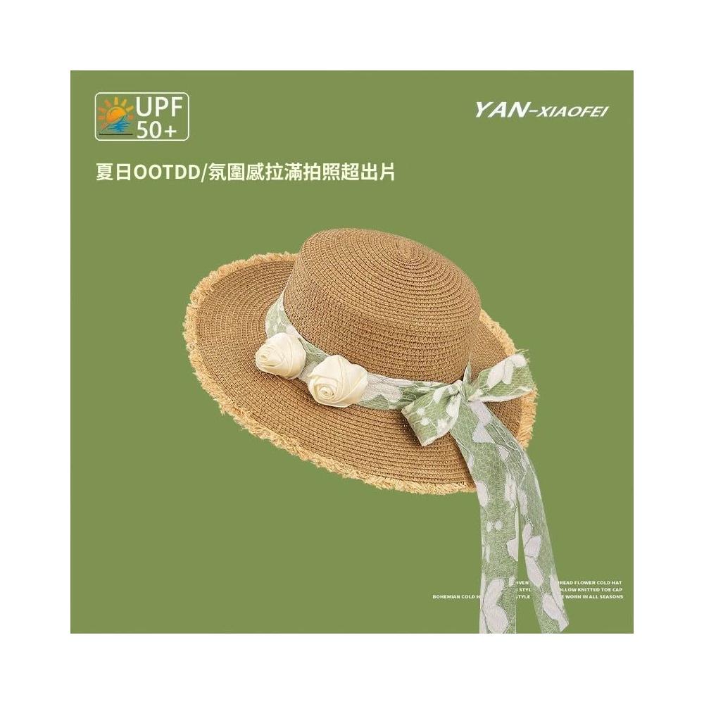 新款法式蝴蝶結夏季女大帽檐遮陽草帽海邊度假防曬草帽子拍照神器