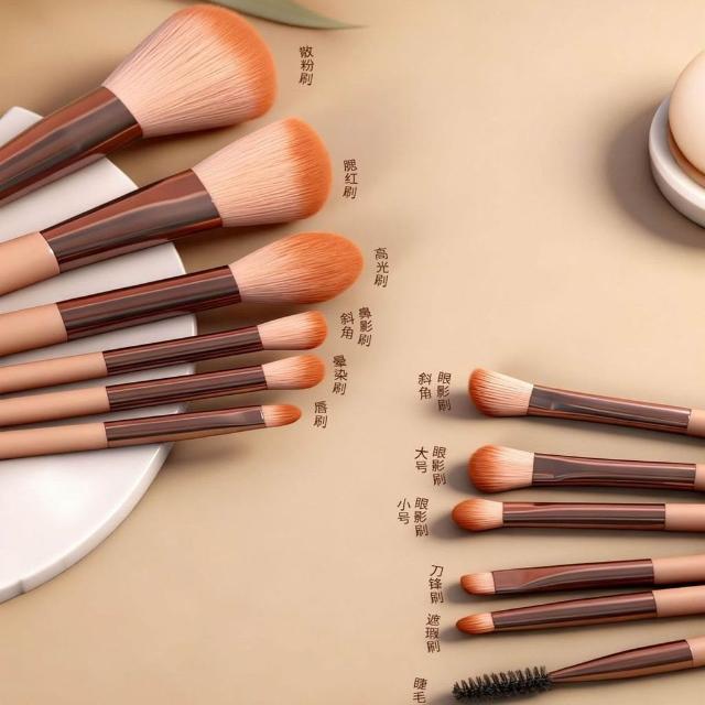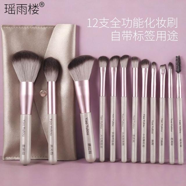 明明嚴選12支新手化妝刷套裝初學者柔軟散粉腮紅遮瑕刷子帶字標記標籤全套