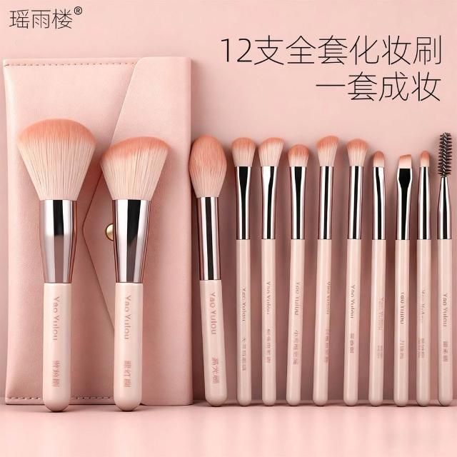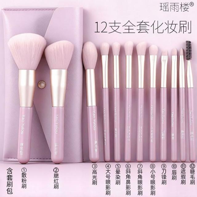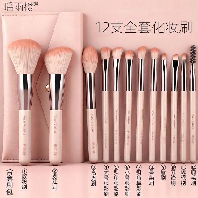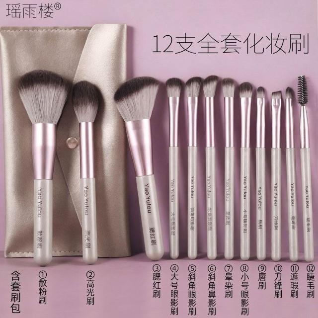 明明嚴選12支新手化妝刷套裝初學者柔軟散粉腮紅遮瑕刷子帶字標記標籤全套