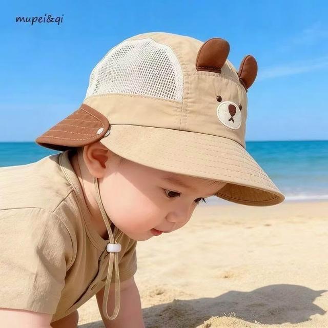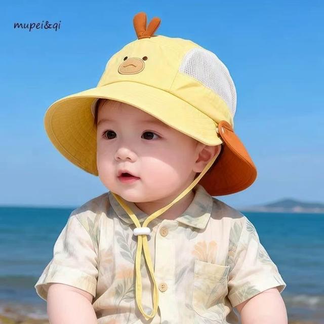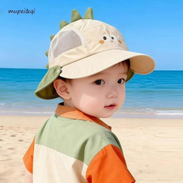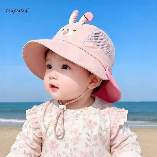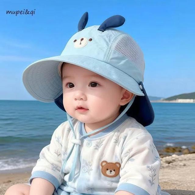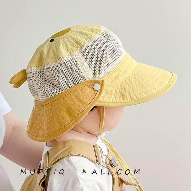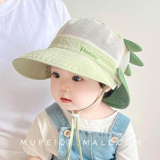 甄選嬰兒帽子夏季遮陽帽漁夫帽男童女寶寶網大檐可拆披肩兒童透氣速幹