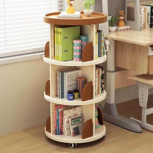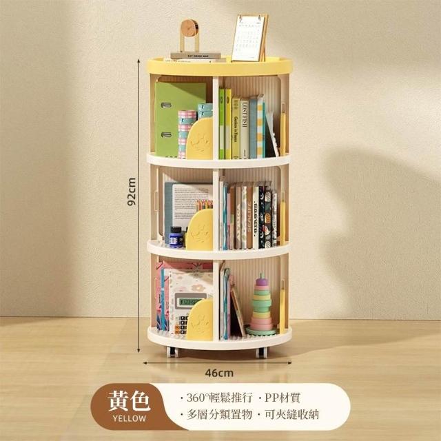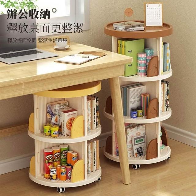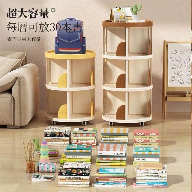 塑料360度旋轉書架 帶輪落地家用繪本架 書櫃轉角置物架子 可移動置物架 收納架 書包置物架 收納架推車移動書架DYT
