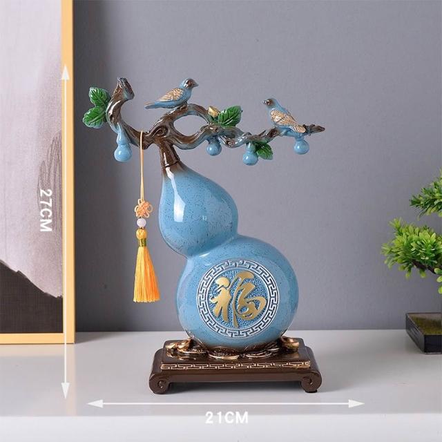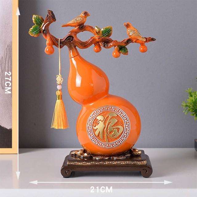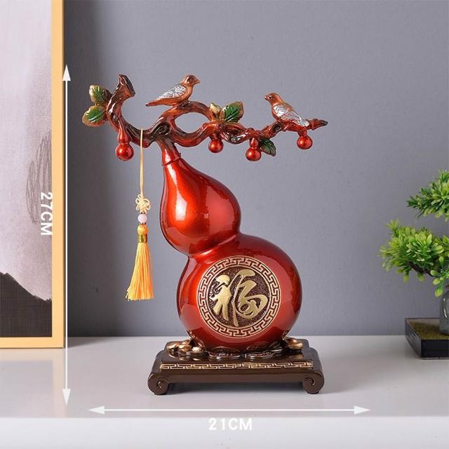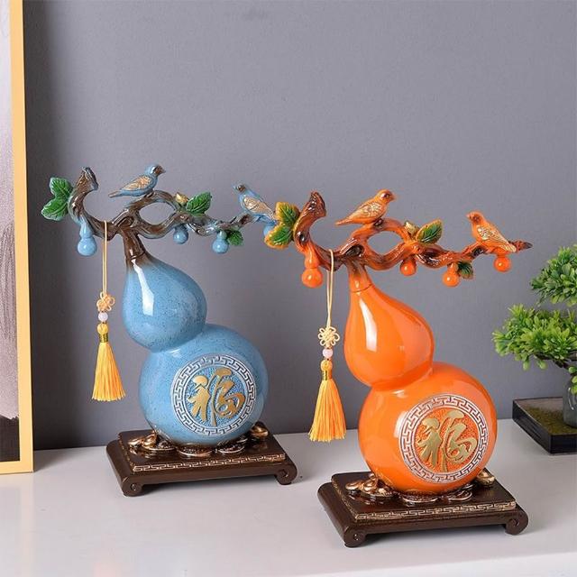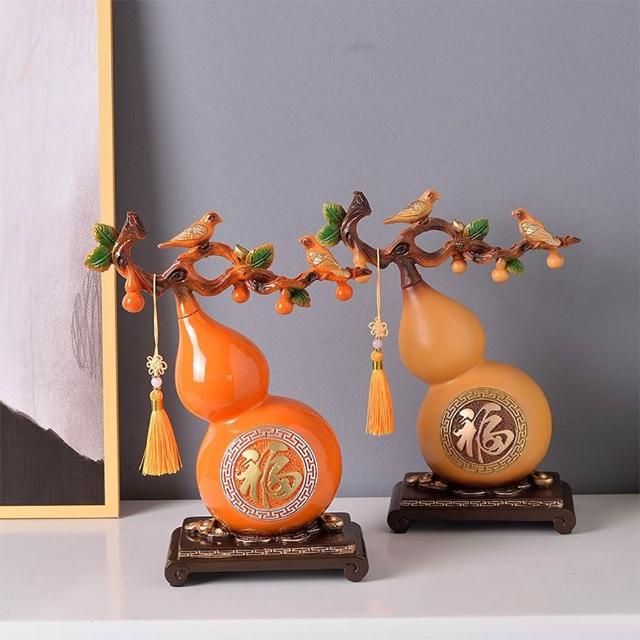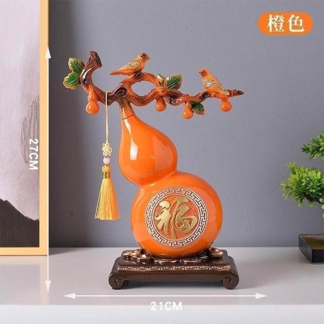 新中式葫蘆擺件 招財進寶樹脂工藝 客廳柿柿如意裝飾品 喬遷新居禮物 葫蘆擺件 新中式家居玄關酒櫃裝飾品DYT