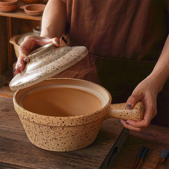 老式帶蓋單柄小砂鍋傢用商用煲湯鍋明火幹燒不裂耐高溫燃氣竈專用