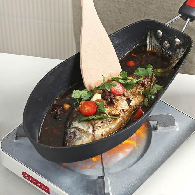 麵大師3d煎魚鍋烤魚專用鍋特大號魚形鐵闆燒傢用長方形耐高溫新款