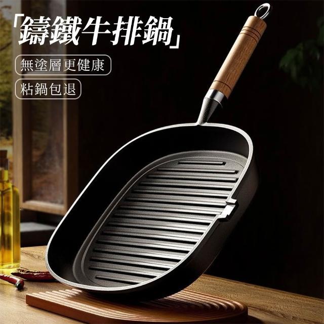 鑄鐵鍋牛排煎鍋一體專用條紋煎牛排鍋烤肉平底鍋無塗層不粘鍋家用