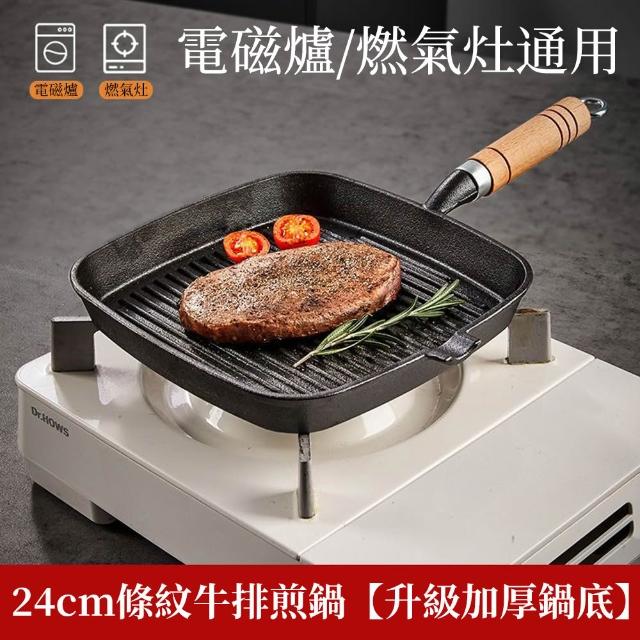 鑄鐵鍋牛排煎鍋一體專用條紋煎牛排鍋烤肉平底鍋無塗層不粘鍋家用