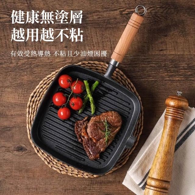 鑄鐵鍋牛排煎鍋一體專用條紋煎牛排鍋烤肉平底鍋無塗層不粘鍋家用