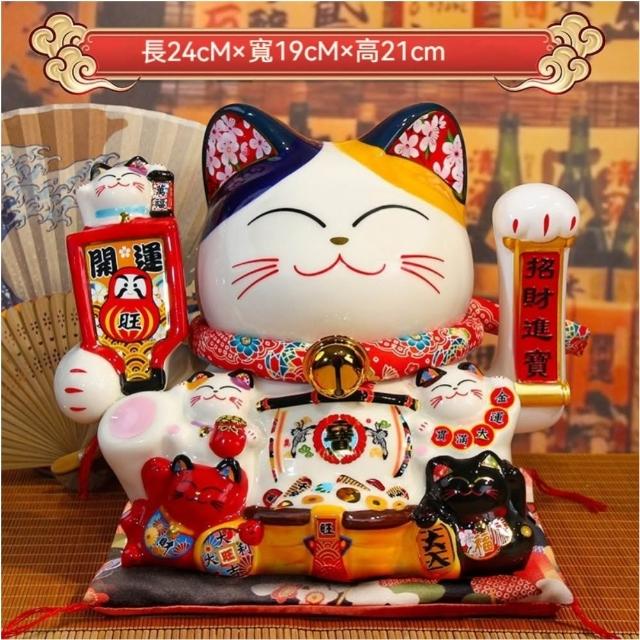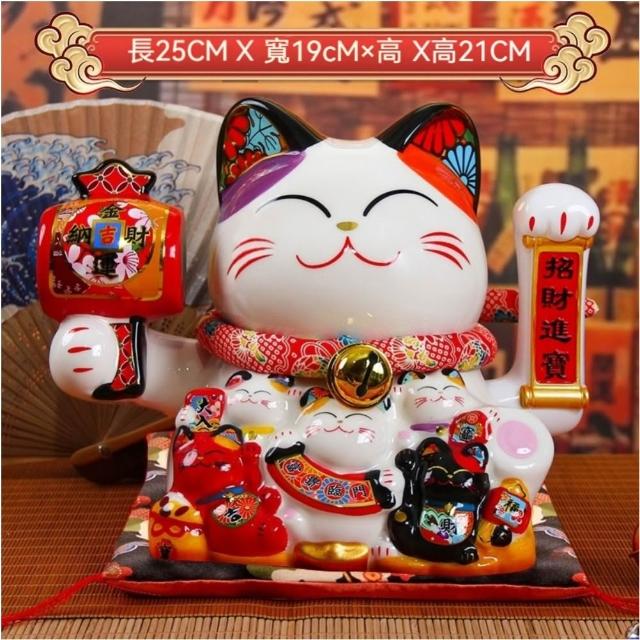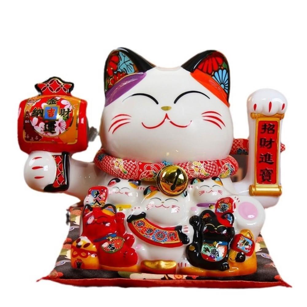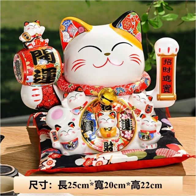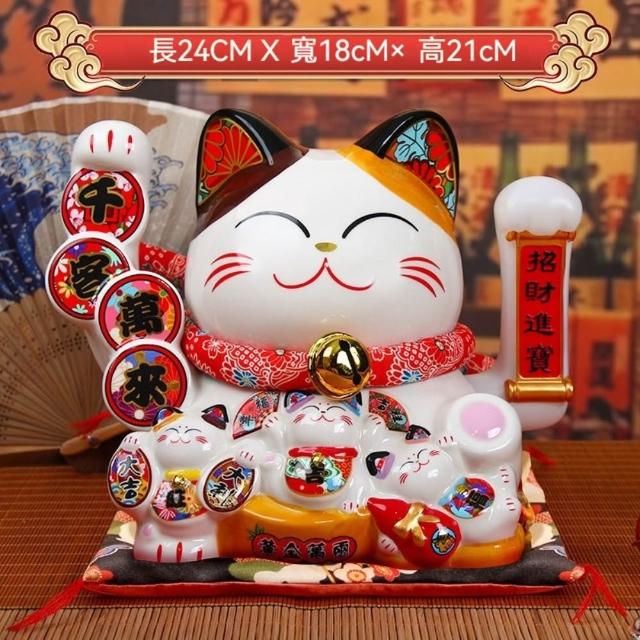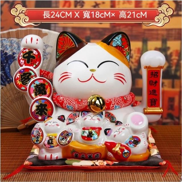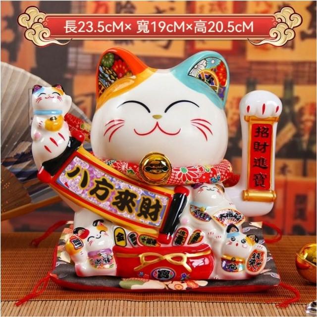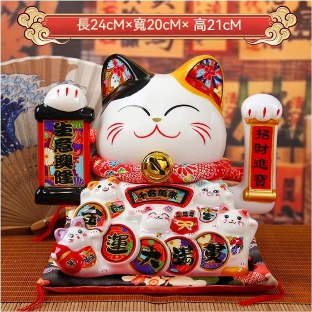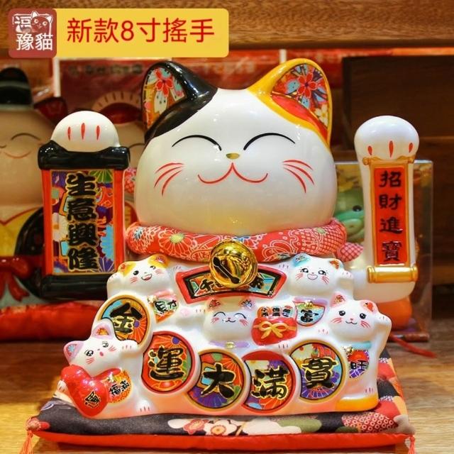 8寸電動搖手招財貓 陶瓷招財貓擺件 自動擺手前臺玄關招財招財貓