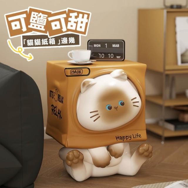 貓貓紙箱落地擺件 創意可愛卡通裝飾品 奶油風客廳家居品 喬遷新居禮品