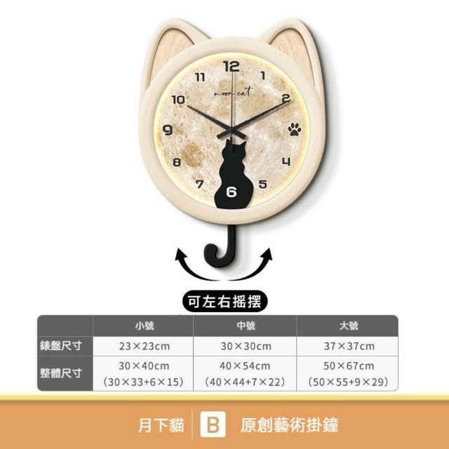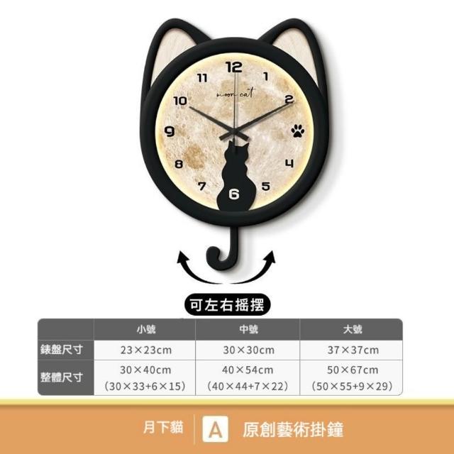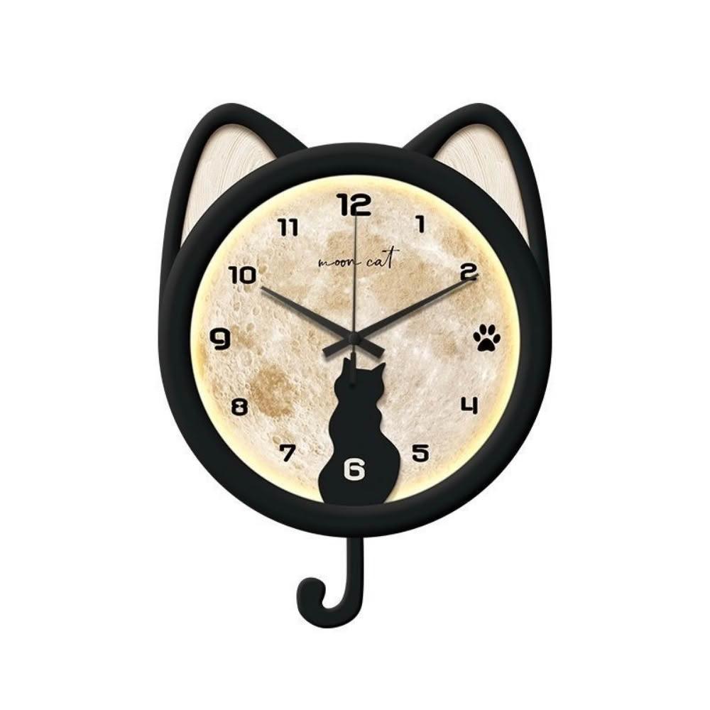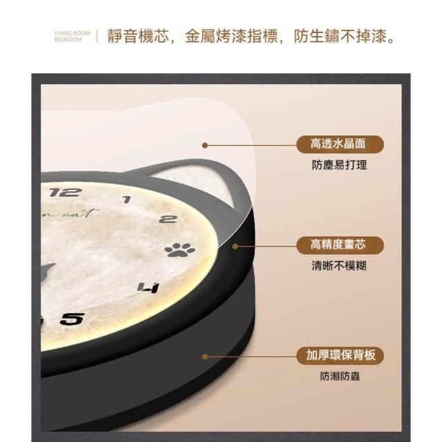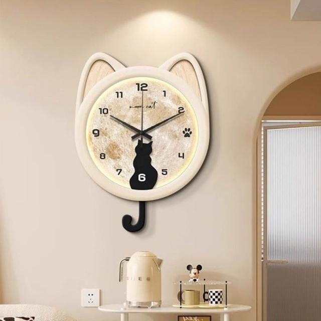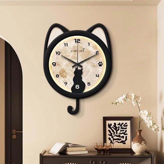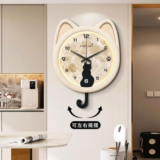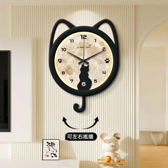 復古月下貓掛鐘 貓咪靜音掛墻 客廳法式創意擺鐘 掛墻時鐘藝術鐘錶
