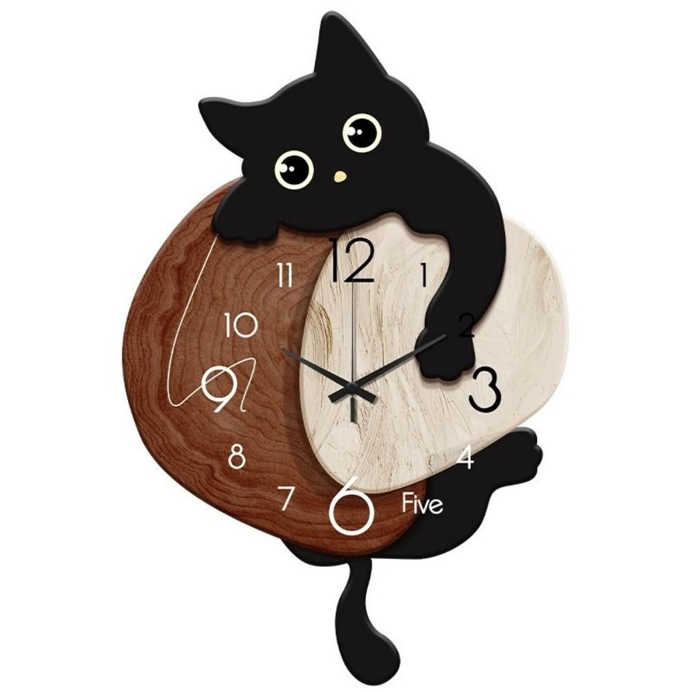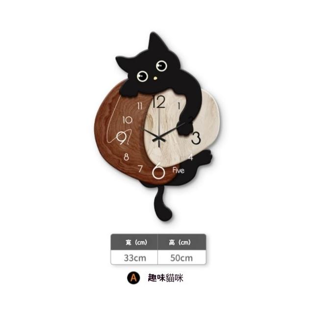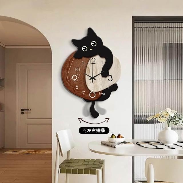 YIZ TIME貓咪時鐘 客廳搖擺靜音掛鐘 簡約現代餐廳貓咪鐘表掛墻卡通創意時鐘hl