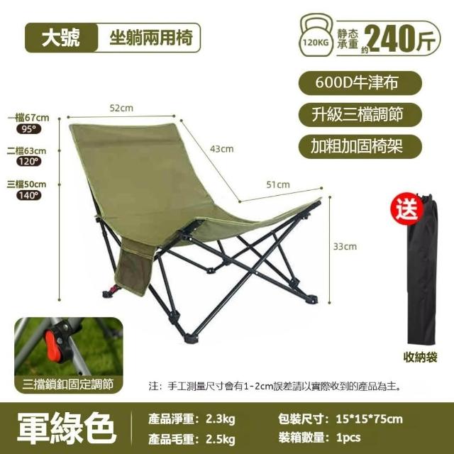 生活休閑戶外折疊躺椅多檔可調(坐躺兩用 600D牛津布 承重約240斤)