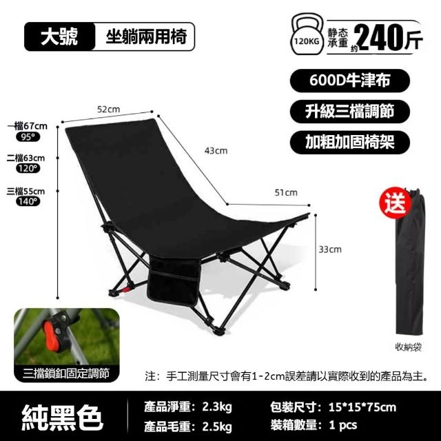 生活休閑戶外折疊躺椅多檔可調(坐躺兩用 600D牛津布 承重約240斤)
