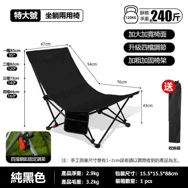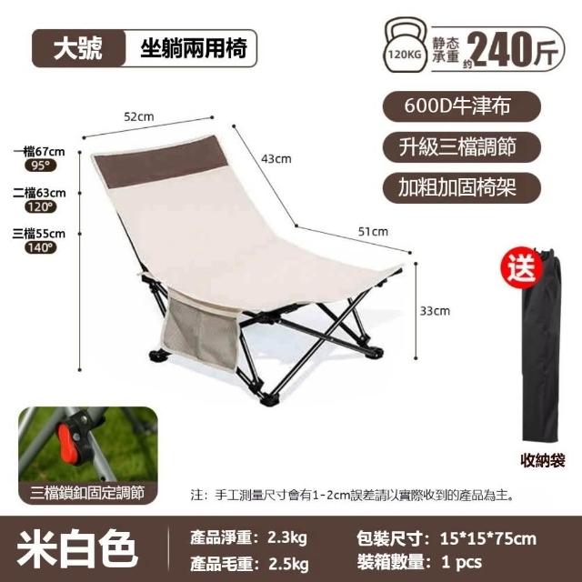 生活休閑戶外折疊躺椅多檔可調(坐躺兩用 600D牛津布 承重約240斤)