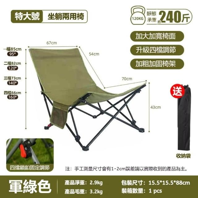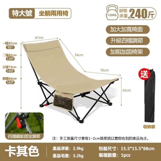 生活休閑戶外折疊躺椅多檔可調(坐躺兩用 600D牛津布 承重約240斤)