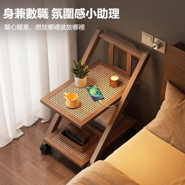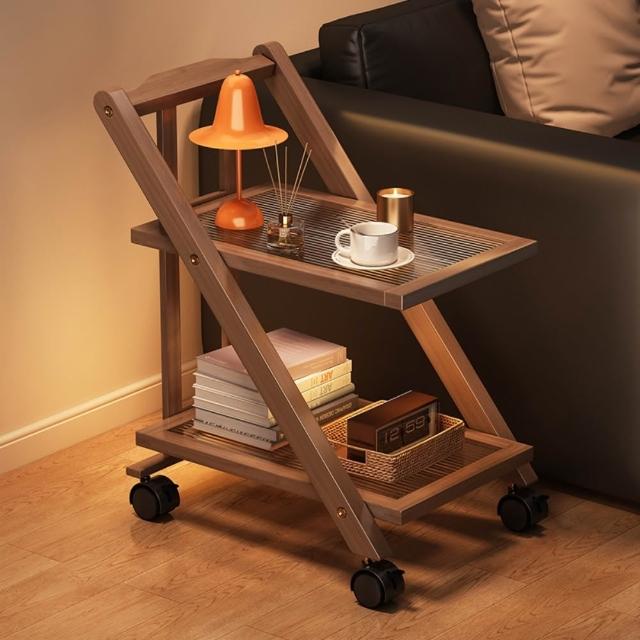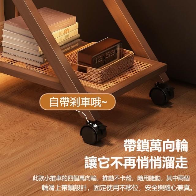 現代簡約楠竹摺疊移動小推車茶幾置物架(把手帶鎖萬向輪置物架)