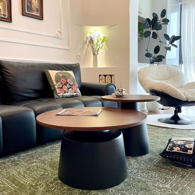 現代簡約光遇高低圓形客廳茶幾(碳鋼材質 奶油風組合茶幾)