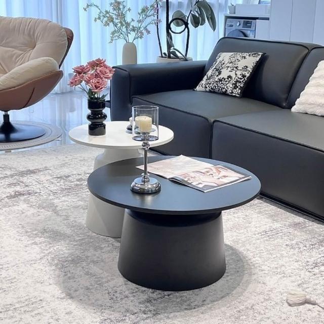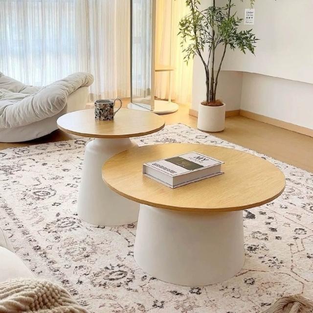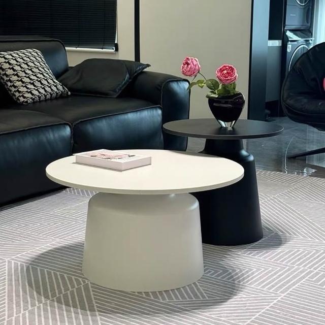 現代簡約光遇高低圓形客廳茶幾(碳鋼材質 奶油風組合茶幾)