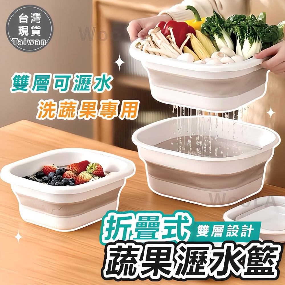[雙層可蓄水🔥]瀝水籃 折疊瀝水籃 洗菜盆 洗菜瀝水盆 洗菜瀝水籃
