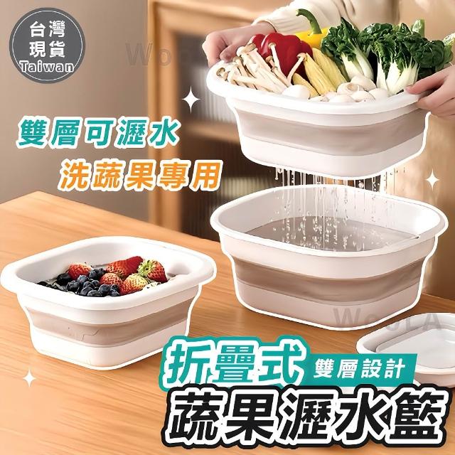 [雙層可蓄水🔥]瀝水籃 折疊瀝水籃 洗菜盆 洗菜瀝水盆 洗菜瀝水籃