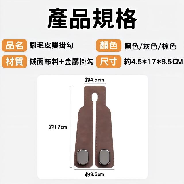 車用掛勾 翻毛皮金屬雙掛勾 汽車掛鉤 黑色灰色棕色 車用掛鉤 汽車掛勾 椅背掛鉤