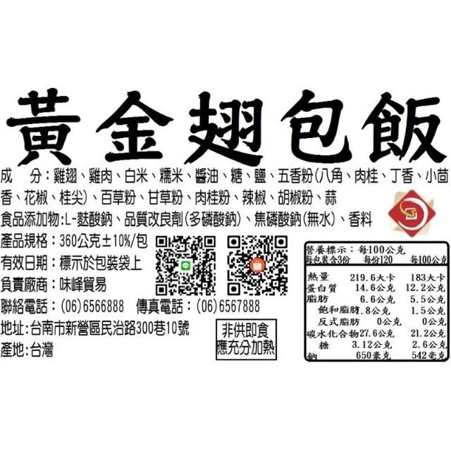 味達食品3入/黃金翅包飯/雞翅包飯/脆皮翅包飯/手羽燒雞翅/烤肉/夜市炭烤/中秋烤肉/雞翅/飯
