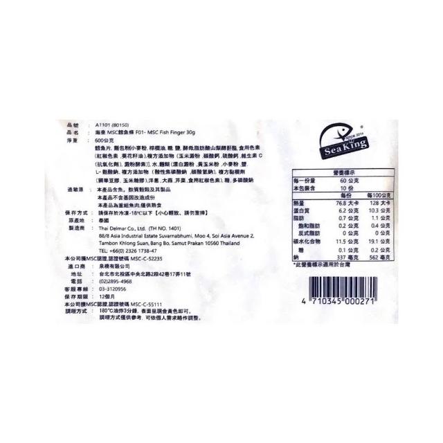 味達食品泉橋/海皇/MSC/酥炸鱈魚條/20入/600g/早餐店/營業用/鱈魚條/炸鱈魚條/炸鱈魚